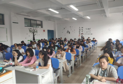 6月24日,博雅楼3705教室,公司邀请贵阳一中新世界未来城公司董事长、贵阳一中新世界公司副董事长、贵阳一中教学处副主任、贵阳市骨干教师、中学语文高级教师夏黎华老师,为2018级汉语言文学班级全体 94位同学作了一场题为“十年育树,百年育人”的教学经验分享会。