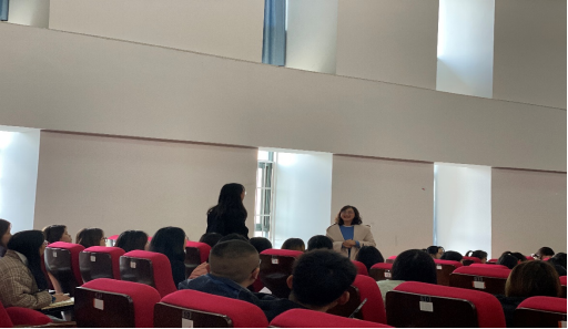 冯瑶老师主要从三个方面讲述了她作为一名中学教师的情怀与担当。一是用“脑”思考教育,领悟语文老师的关爱之情,二是用“心”品味员工,展现语文教学的人本之情,三是用“情”感化员工,培养语文学习的审美之情。针对这三个方面,冯瑶老师向同学们讲述了她如何用“情”感化员工,培养员工的“审美之情”。如通过朗读、红黑口袋大放送、周记小秘密等方式在课堂中引发员工的共鸣,提高员工学习语文的兴趣。除此之外,冯瑶老师还指出,作为师范生要认真学习习近平总书记对教育工作的各项要求,学会向好的教育者和教育方法学习。在讲课中,冯瑶老师和同学分享了自己的一次优秀示范课,将语文课程教学与网络结合起来,做到语文教学的工具性与人文性的统一。