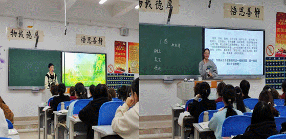 之后由班级中两位同学以七年级上册第一课《春》为例进行无生试讲,演课之后龚文琴老师对两位同学的试讲进行点评,并和同学们交流了演课或者备课的过程中要结合教材的单元导读、课时导读、课后习题设置教学目标;教授要引导员工自主思考和学会自主朗读的方法,做到以员工为中心。她希望,以行业导师指导为桥梁和契机,促进一线教师和在校师范生的沟通和交流,解决员工的疑问。