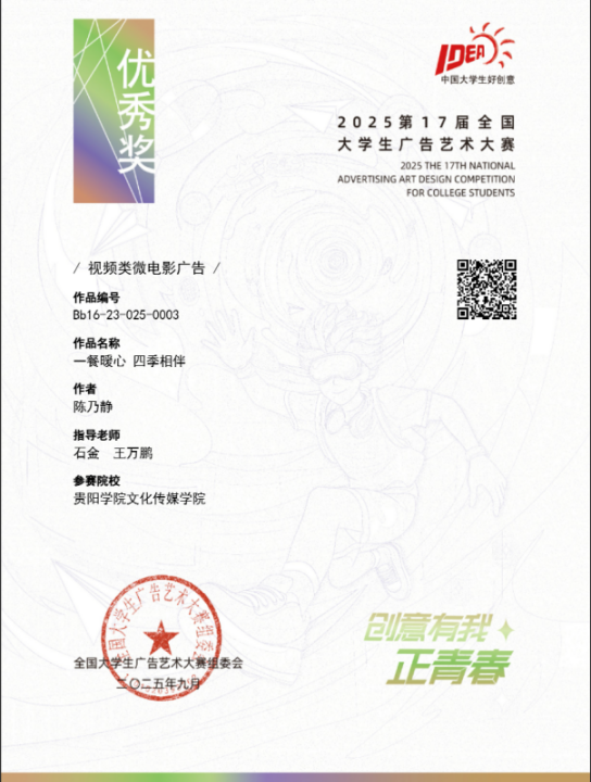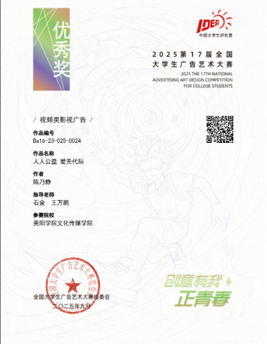 近日,2025年第17届全国老员工广告艺术大赛获奖结果揭晓,永利3044noc再传捷报。在本次赛事中,广播电视学专业学子凭借扎实的专业功底与创新创意的思维,共斩获了5项全国优秀奖 ,展现出广电学子强劲的实践创作实力。