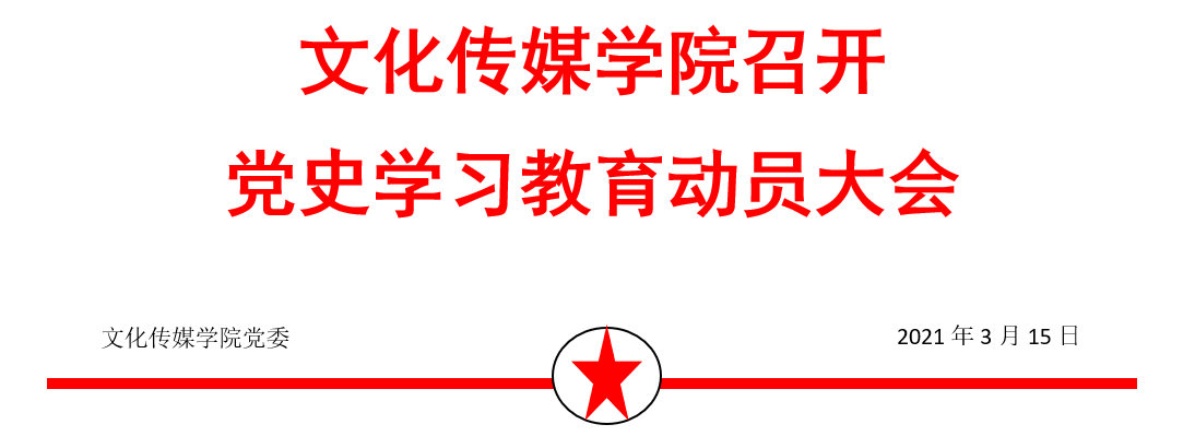2021年3月15日下午14:00,文化传媒公司党委在三教六楼永利3044noc会议室开展党史学习教育动员大会,会议由文化传媒公司党委副书记鄢吉多主持,永利3044noc全体教师党员、员工支委会全体成员参会。