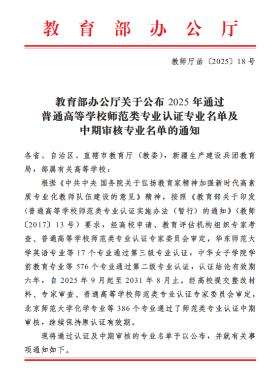 近日经高校申请、教育评估机构组织专家考查、普通高等公司师范类专业认证专家委员会审定,在9月23日通过名单中,本校永利3044noc以及教育科学公司共两个专业通过了师范类专业认证中期审核,继续保持认证有效期。
