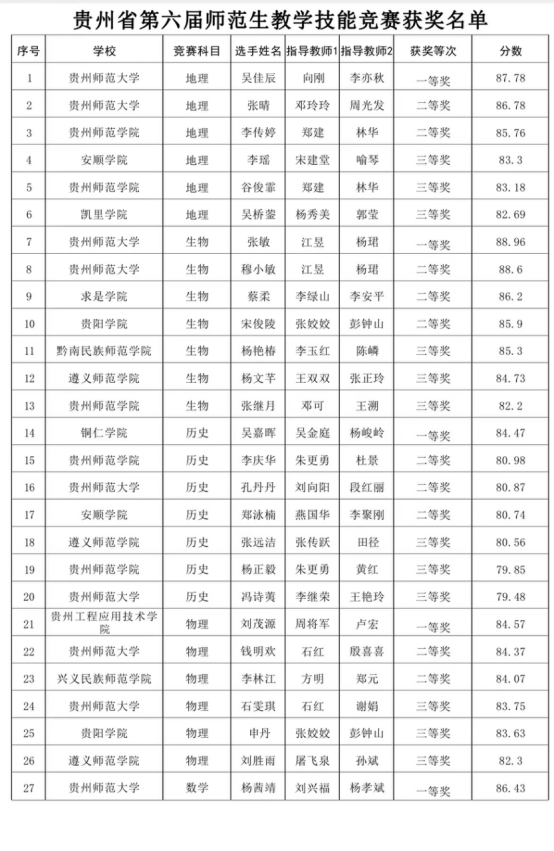 2022年7月15日,由贵州省教育厅主办,贵州师范大学承办的贵州省第六届师范生教学技能竞赛拉开序幕,来自全省十多所高校的师范生代表参加了这次比赛。公司19级汉语言文学专业的彭启洁同学获得了高中语文组三等奖的好成绩,指导老师为公司林雨馨副教授。